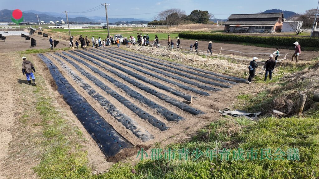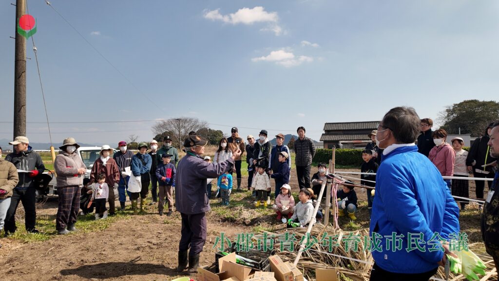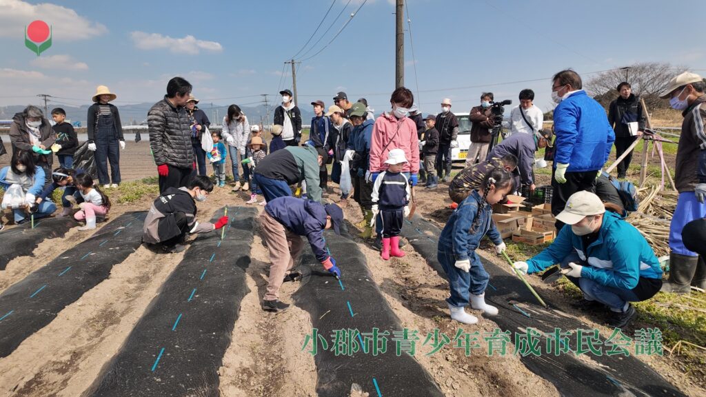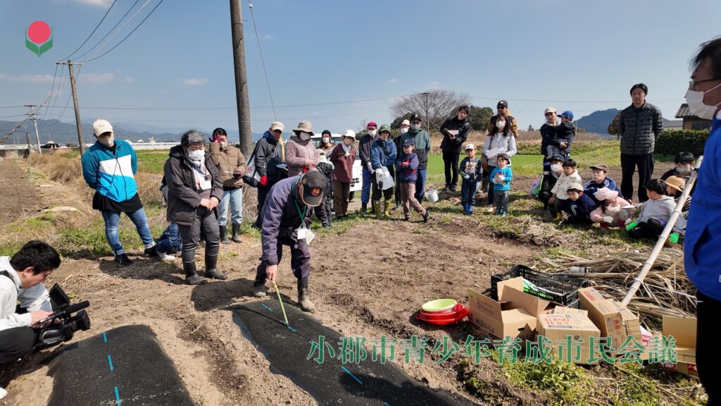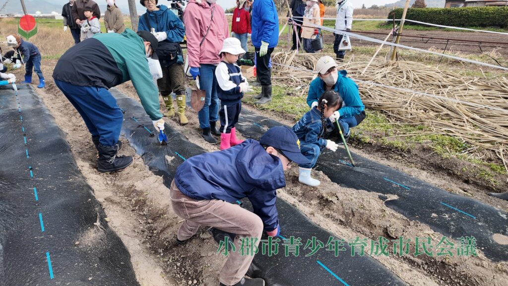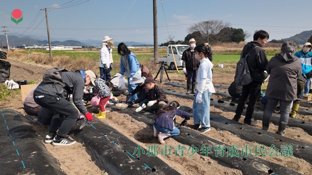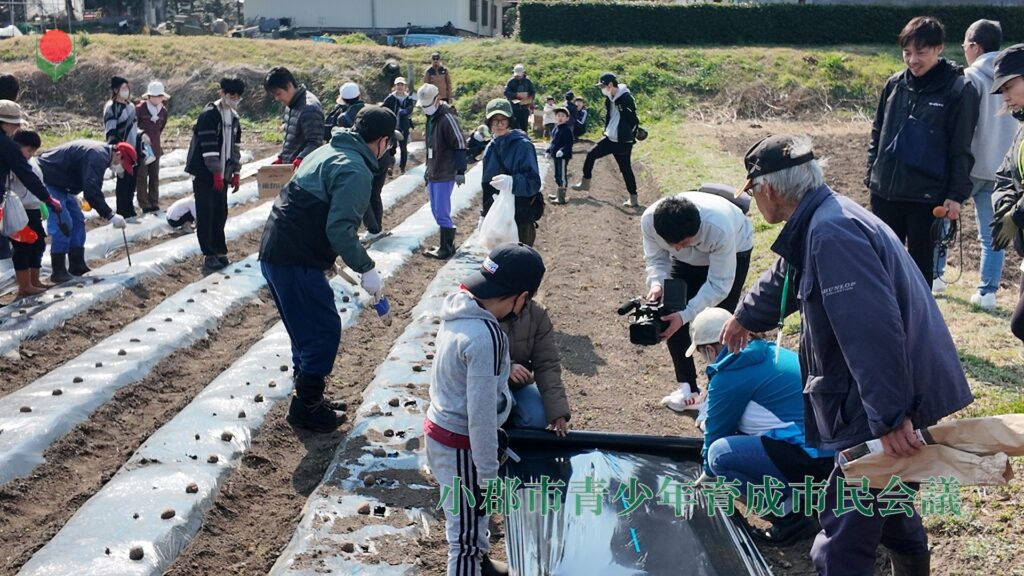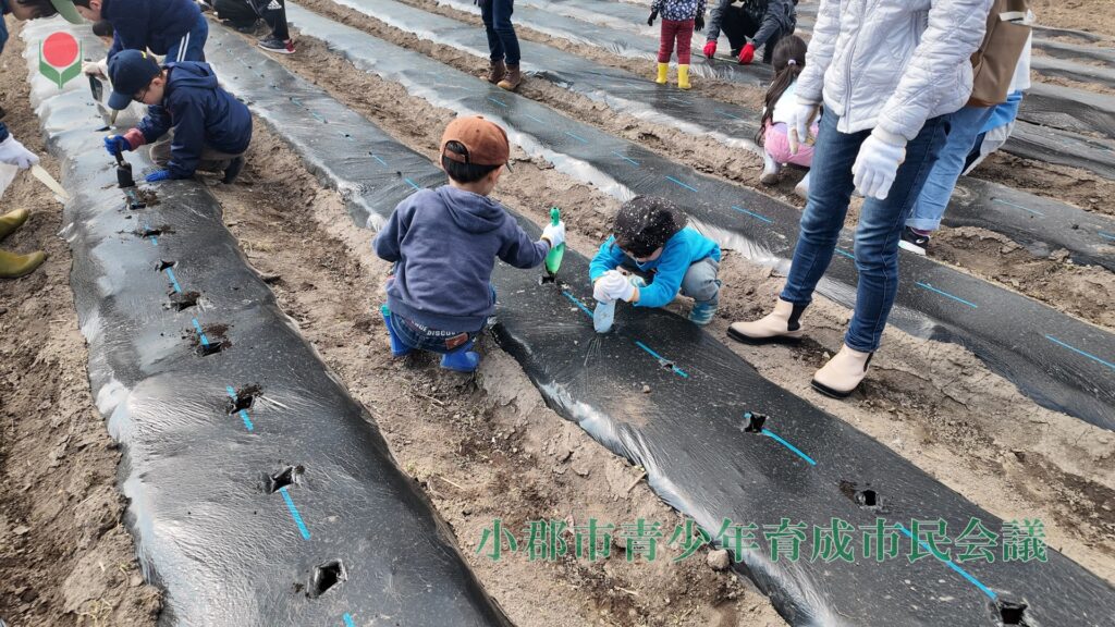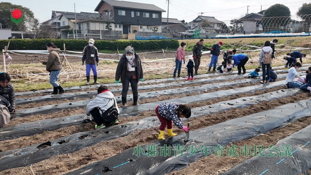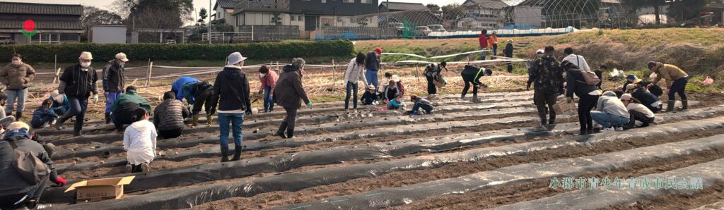 親子体験活動の一環として、3月9日に、米倉指導員の畑をお借りして、来年度収穫予定のジャガイモの植付けを実施しました。